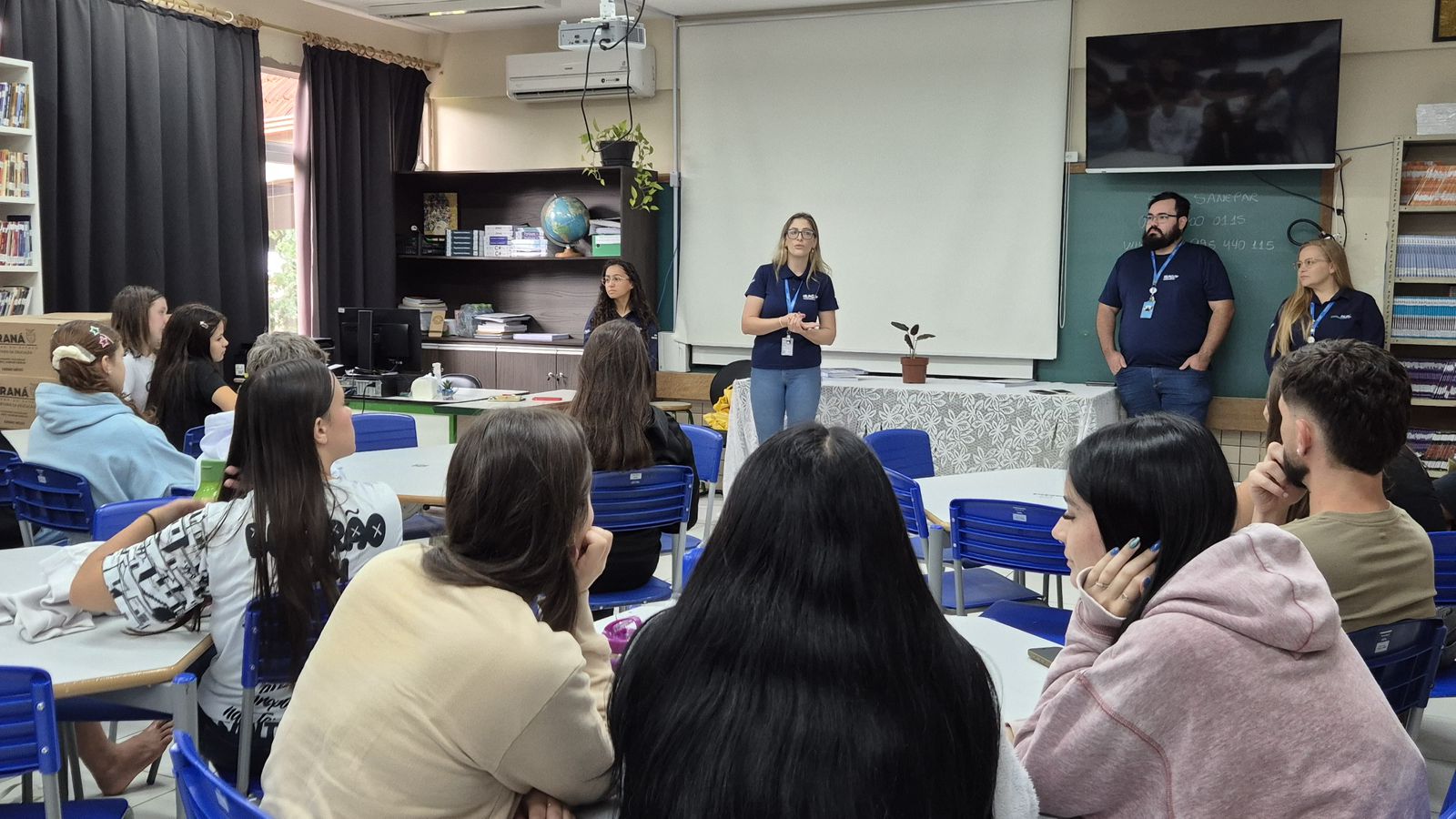 Como parte da conversa, a equipe apresentou a atuação da Iguaçu Saneamento dentro da Parceria Público-Privada firmada com a Sanepar, destacando o compromisso de ampliar o acesso ao saneamento e gerar impactos positivos na qualidade de vida e no meio ambiente. O tema da universalização foi trazido de forma clara, conectando os alunos às metas do novo Marco Legal, que prevê que, até 2033, 99% da população tenha acesso à água potável e 90% à coleta e tratamento de esgoto.