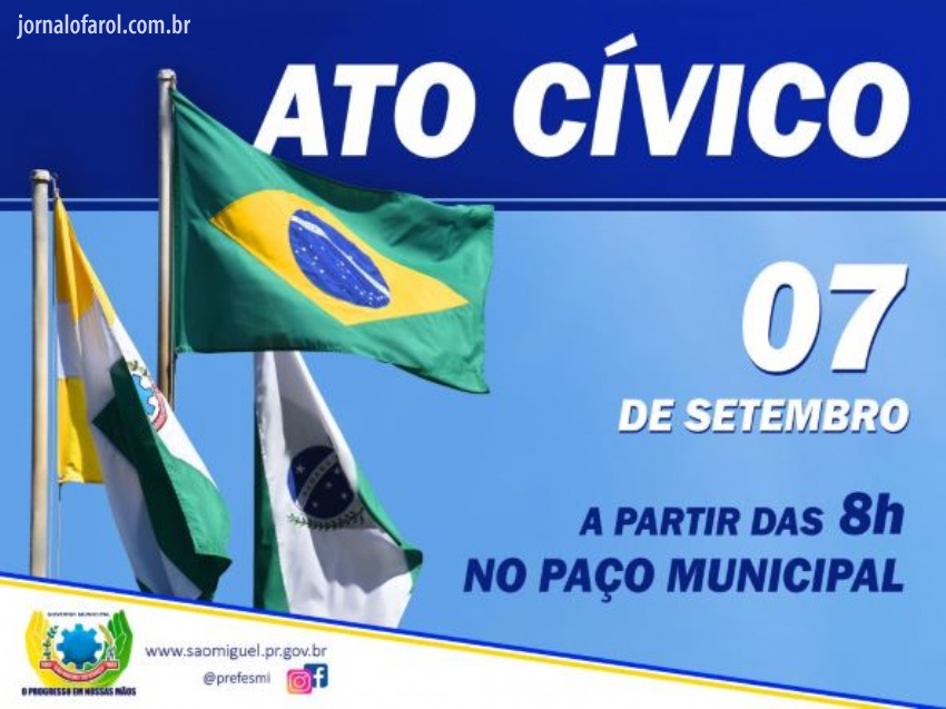 Da Assessoria - O Governo Municipal de São Miguel do Iguaçu, por intermédio da secretaria de Educação, vai realizar na próxima quarta-feira, 07 de setembro, um Ato Cívico alusivo aos 200 anos da Independência do Brasil.