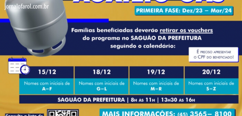 O programa, criado e aprovado pelo Legislativo Municipal através da Lei n° 3.700/2023 e regulamentado pelo decreto n° 609/2023, consiste no fornecimento de 01 (uma) carga de botijão de gás de cozinha de 13 (treze) quilogramas por família beneficiada. Ele tem duração de 12 meses e as entregas do benefício ocorrerão a cada 04 meses, sendo dividido por 03 fases, onde a cada fase serão revistos os beneficiários elegíveis para o programa, aferindo os critérios da Lei Municipal e publicada uma nova lista.