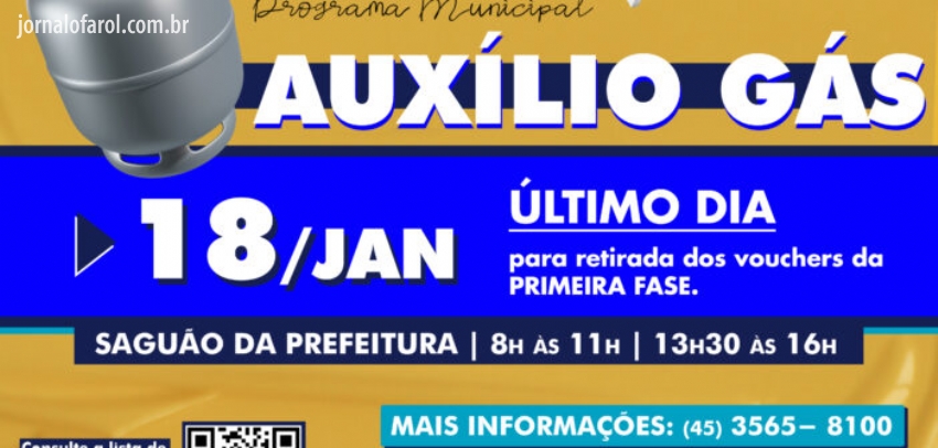 Da Assessoria - O Governo Municipal de São Miguel do Iguaçu, por intermédio da Secretaria de Assistência Social, informa que a entrega final dos vouchers da primeira fase do Programa Municipal ‘Auxílio Gás’ será realizada no próximo dia 18 de janeiro, uma quinta-feira. Essa nova data foi disponibilizada para atender os beneficiários que não retiraram seu voucher nas datas disponibilizadas em dezembro.