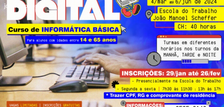 O curso será ministrado na Escola do Trabalho João Manoel Scheffer, no período de 04 de março a 06 de junho de 2024 com diversos horários, conforme as turmas.