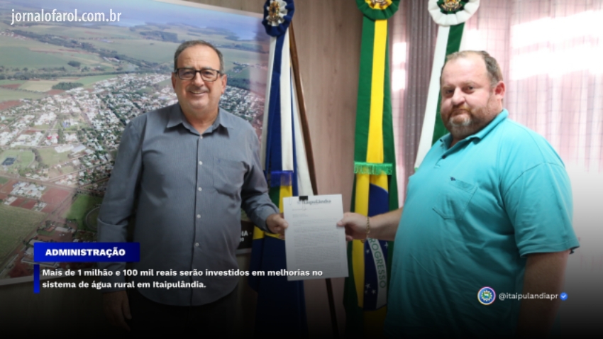 Da Assessoria - Buscando atender demandas emergenciais e estruturais relacionadas ao sistema de abastecimento hídrico das áreas rurais do município de Itaipulândia, na última semana, o Prefeito Lindolfo Martins Rui efetuou o protocolo do Projeto de Lei nº 038/2025 visando a autorização para abertura de crédito adicional suplementar no valor de R$1.188.000,00 (um milhão, cento e oitenta e oito mil reais) para ser apreciado pelos Vereadores.