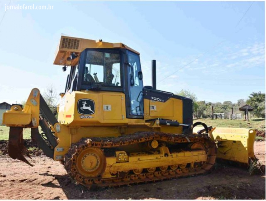 O trator chegou e já foi para o trabalho em campo. Está sendo utilizado no levantamento da estrada que liga a cidade até a comunidade da Bela Vista, em trecho que posteriormente receberá pavimentação poliédrica.