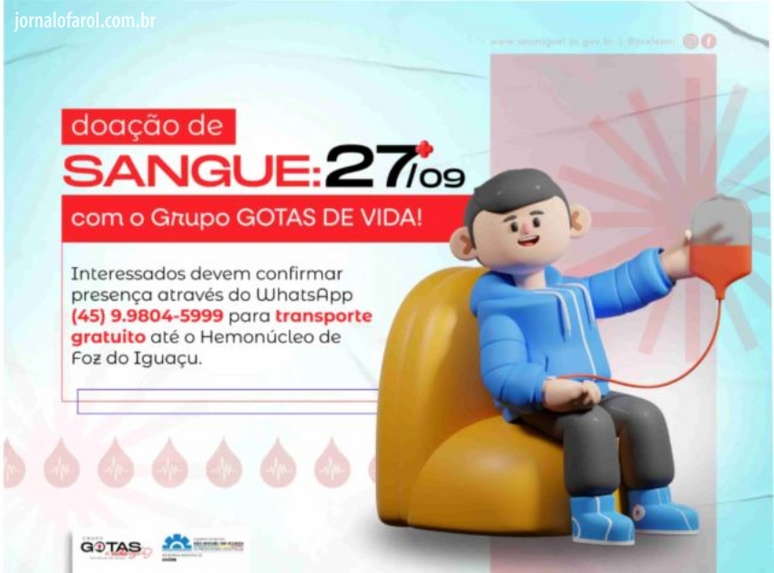 Da Assessoria - O Grupo Gotas de Vida, vinculado à Secretaria Municipal de Saúde de São Miguel do Iguaçu, convida a comunidade para participar de um dia de doação de sangue neste sábado, 27 de setembro.