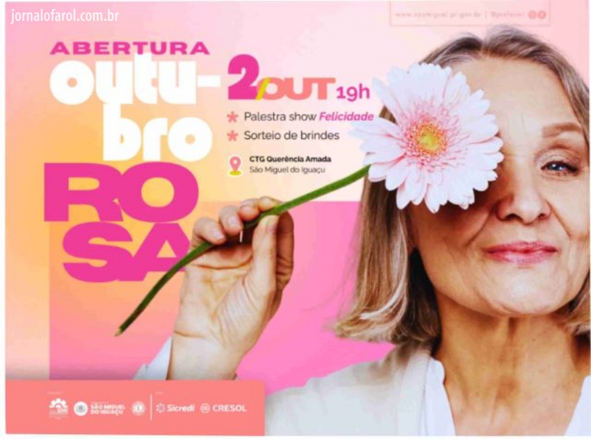 Da Assessoria - O Governo Municipal de São Miguel do Iguaçu, por meio da Secretaria de Saúde, dará início a mais uma edição da Campanha Outubro Rosa. A abertura oficial será nesta quinta-feira, 02 de outubro, às 19h000, no CTG Querência Amada.