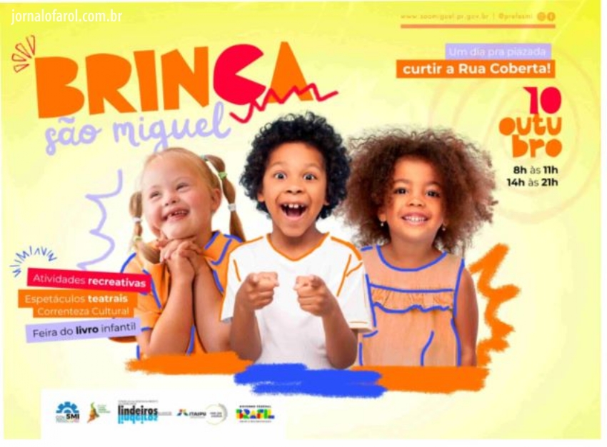 Da Assessoria - O Governo Municipal de São Miguel do Iguaçu, por meio da Secretaria de Cultura e Esporte, vai realizar no dia 10 de outubro o Brinca São Miguel, evento com uma programação especial em celebração ao Dia da Criança.