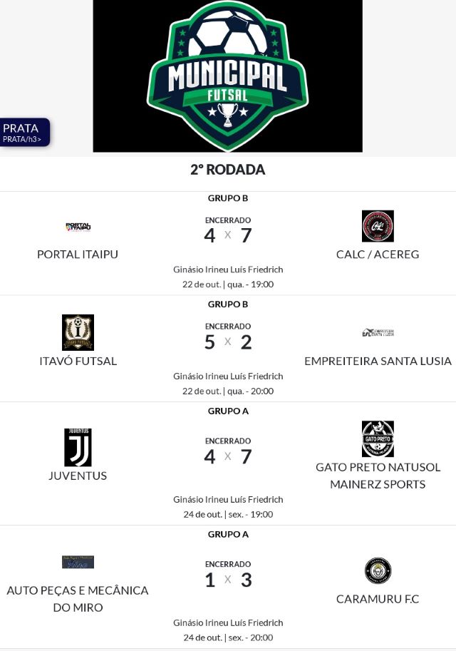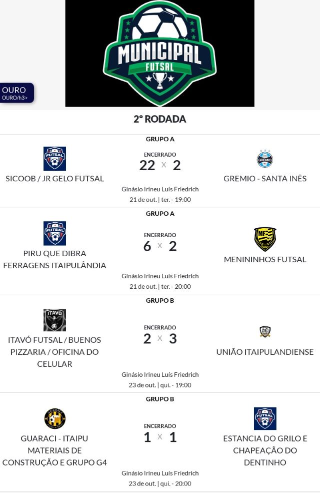 Da Assessoria - As disputas da segunda rodada das séries ouro, prata e bronze do XXXI Campeonato Municipal de Futsal agitaram o Ginásio de Esportes Irineu Luiz Friedrich, com jogos intensos, placares apertados e grande participação do público que acompanhou cada lance com entusiasmo.