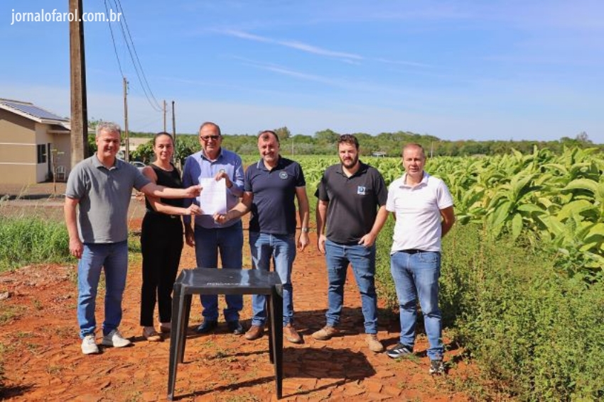 Durante a visita, foi assinada a ordem de serviço para a abertura da Rua Projetada A, Prolongamento Rua 12 de Outubro e Rua Projetada B. O documento foi formalizado com a presença do engenheiro responsável e da sócia proprietária da empresa TJ OBRAS, contratada para executar o projeto, marcando o início oficial das intervenções.