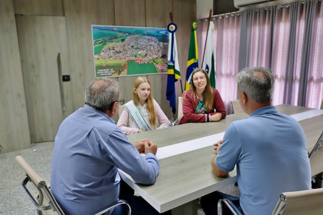 Da Assessoria - Na última segunda-feira (17), o Prefeito Lindolfo M. Rui e o Vice-Prefeito Adolfo F. Preis receberam no gabinete a jovem Steffany Letícia Wecker, de 11 anos, que representou Itaipulândia no concurso Manequim Paraná Juvenil, realizado em Curitiba. Em sua primeira participação em um concurso de beleza, Steffany conquistou o 3º lugar, competindo com meninas que já possuem títulos estaduais, nacionais e internacionais. Tudo isso sem qualquer preparação prévia.