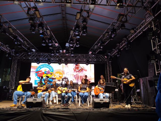 A apresentação, conduzida pela professora Eloísa Darla Grotto, reuniu crianças, jovens e adultos em um espetáculo que celebrou a diversidade musical. Além dos violeiros, o grupo contou com a participação da professora de teclado e dos alunos de vocal e bateria, ampliando a riqueza sonora e proporcionando uma experiência completa ao público presente.