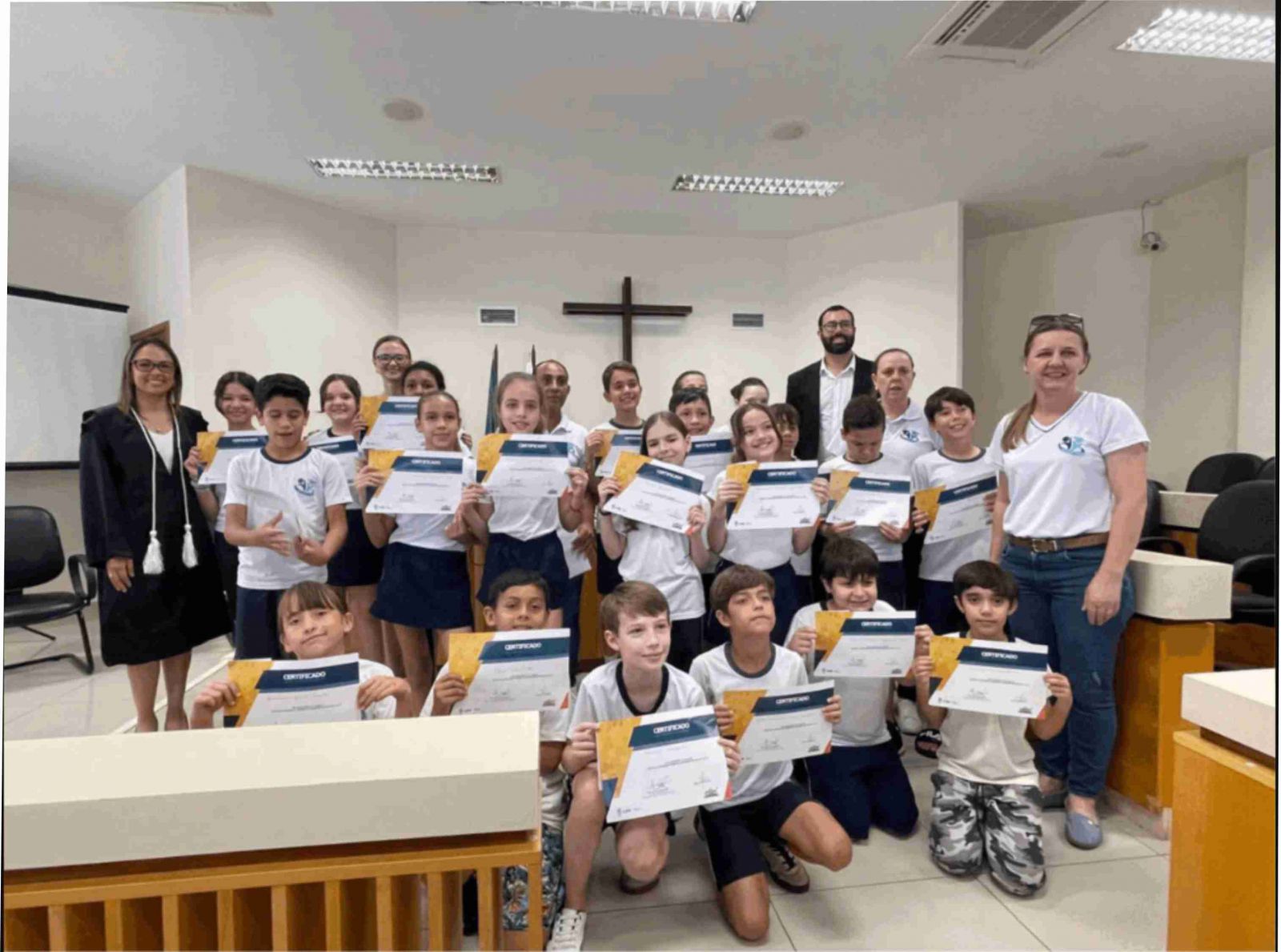 A secretária de Educação, Solange Gamba, agradeceu a parceria e reforçou a importância da iniciativa. “Agradecemos a todos os envolvidos pela dedicação e parceria. Projetos como este ampliam a visão das nossas crianças sobre cidadania, direitos e deveres, fortalecendo a formação integral dos estudantes. É uma grande satisfação ver o entusiasmo deles e o comprometimento das equipes escolares”, ressaltou.