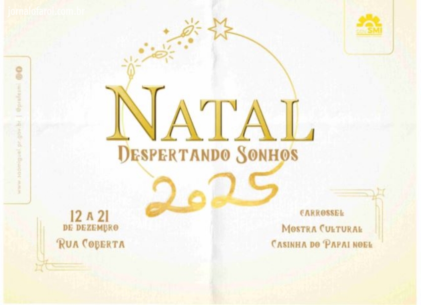 Da Assessoria - O Governo Municipal de São Miguel do Iguaçu realizará nesta sexta-feira, dia 12 de dezembro, às 19h30, na Rua Coberta Addy Cavalca, a abertura oficial do Natal Despertando Sonhos 2025, uma celebração preparada para encantar famílias e fortalecer o espírito natalino no município. A noite contará com apresentação cultural, entrega de chocolates, carrossel gratuito para as crianças e a tradicional chegada do Papai Noel.