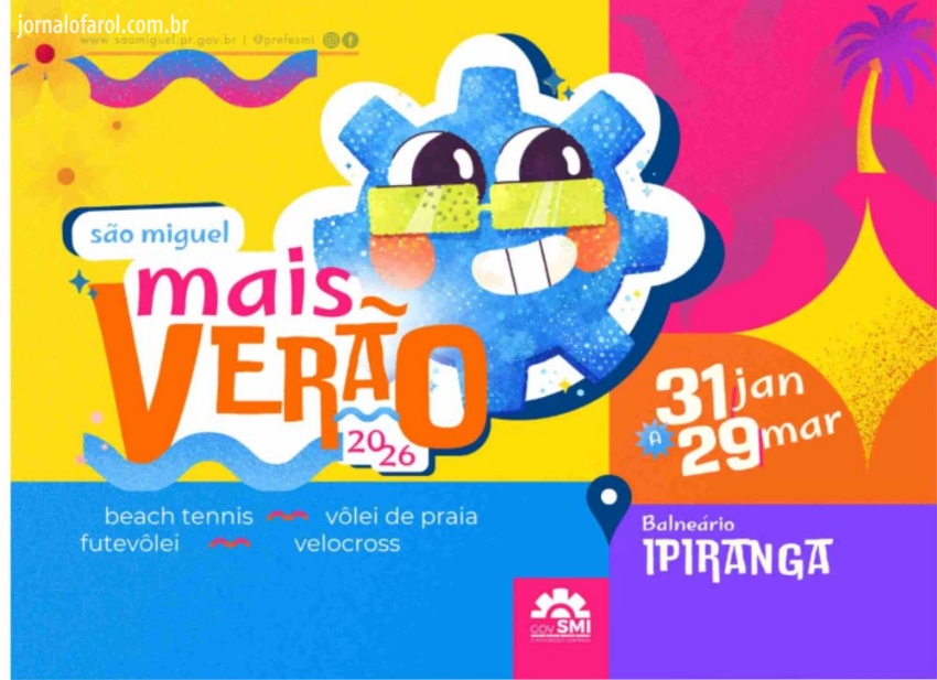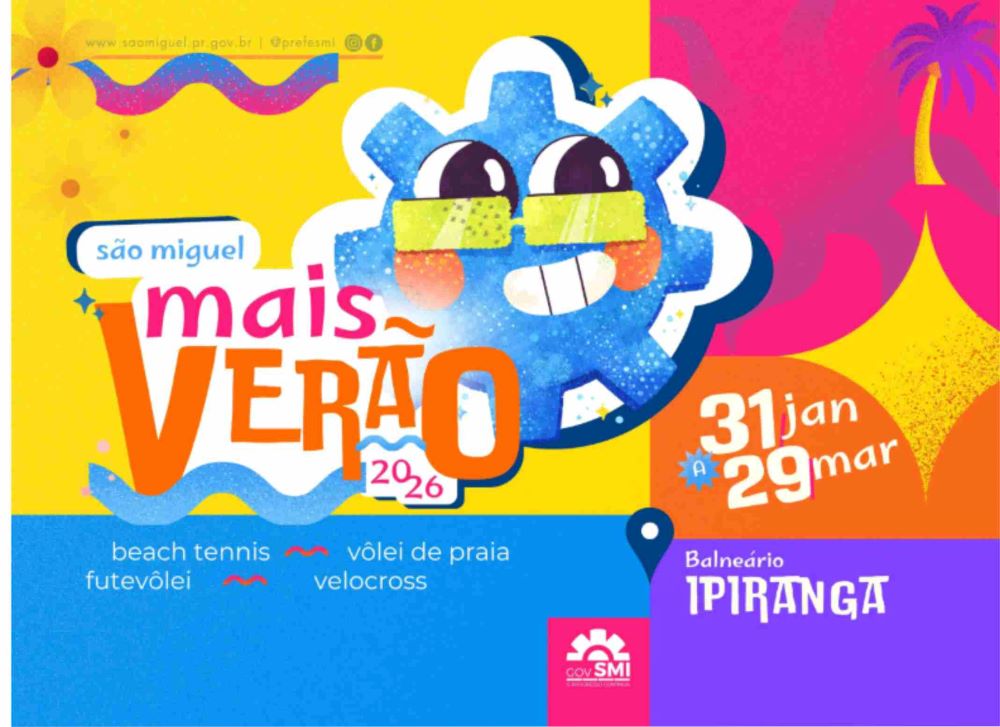 Da Assessoria - O Governo Municipal de São Miguel do Iguaçu, por meio da Secretaria de Cultura e Esporte, anunciou a programação oficial do ‘São Miguel Mais Verão 2026’, que será realizada no Terminal Turístico Ipiranga, a tradicional prainha do município. A iniciativa vai movimentar o verão com uma série de competições esportivas, reunindo atletas locais e da região em diferentes modalidades.