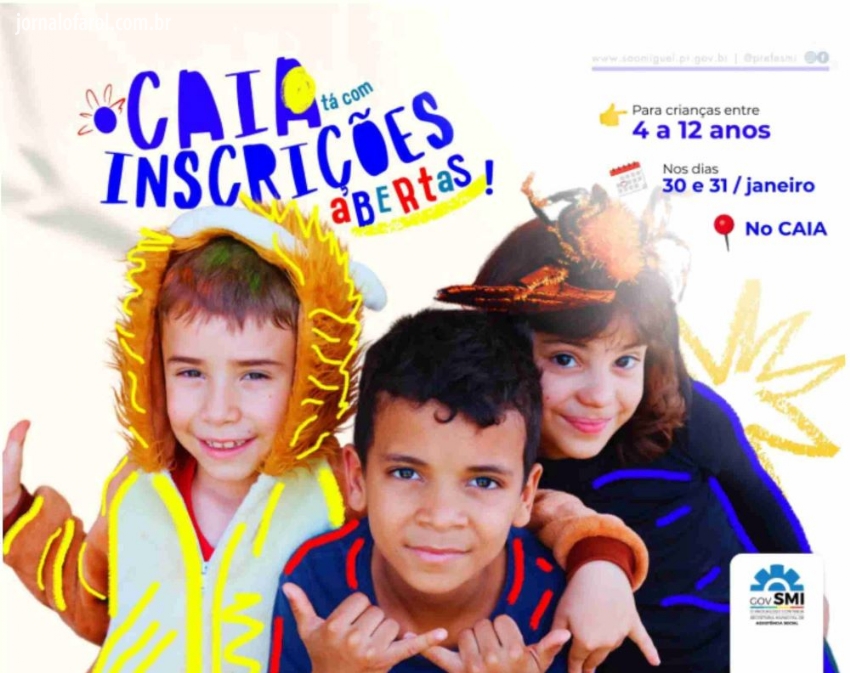 Da Assessoria - O Governo Municipal de São Miguel do Iguaçu, por intermédio da Secretaria de Assistência Social, informa que vai realizar nos dias 30 e 31 de janeiro as inscrições para o Centro de Convivência da Criança Emilio Glory Guerreiro – CAIA.