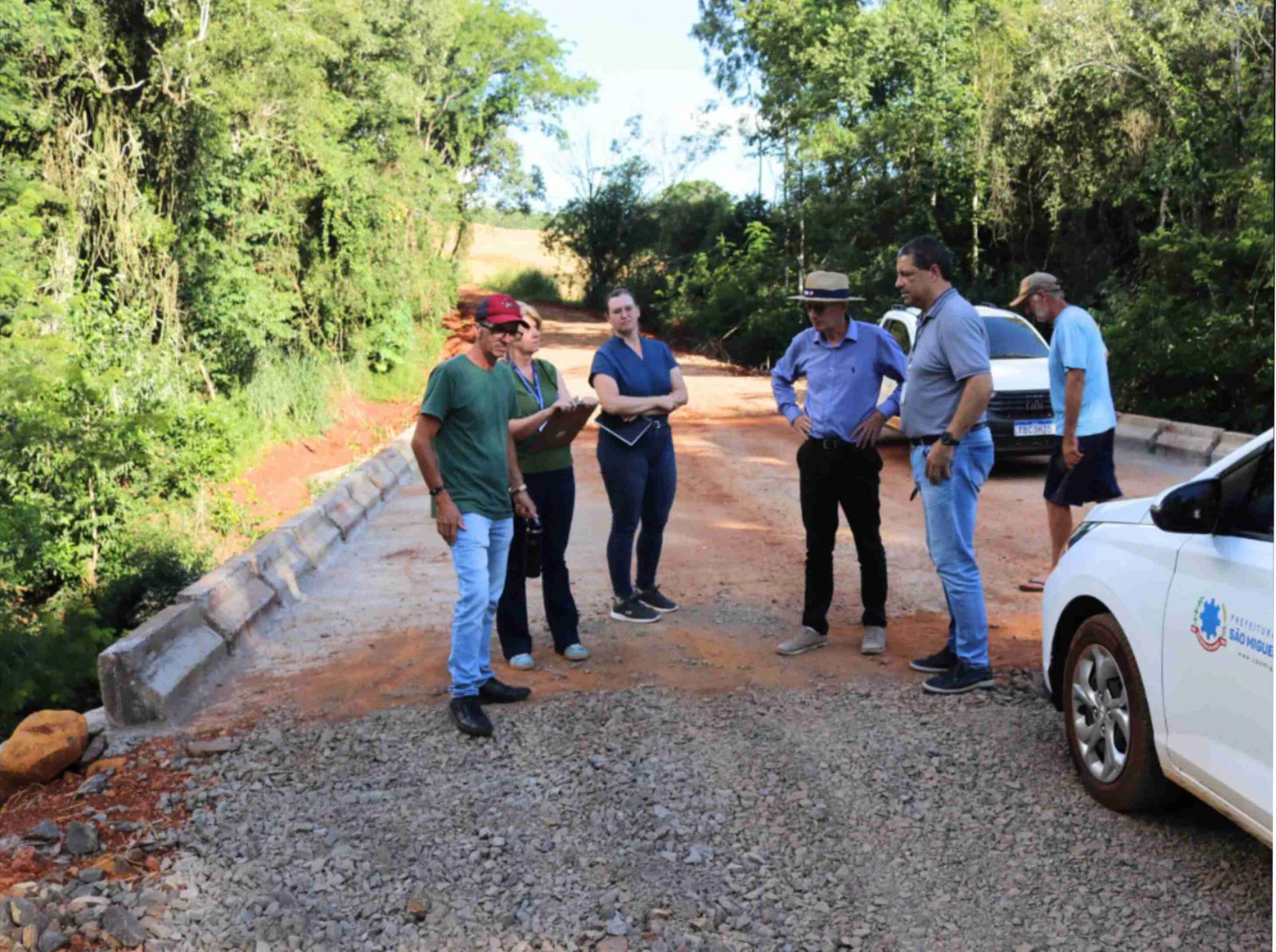 A vistoria teve como objetivo acompanhar o estágio final das intervenções estruturais, que representam um avanço significativo para a mobilidade rural, a segurança viária e a integração entre São Miguel do Iguaçu e Serranópolis do Iguaçu.