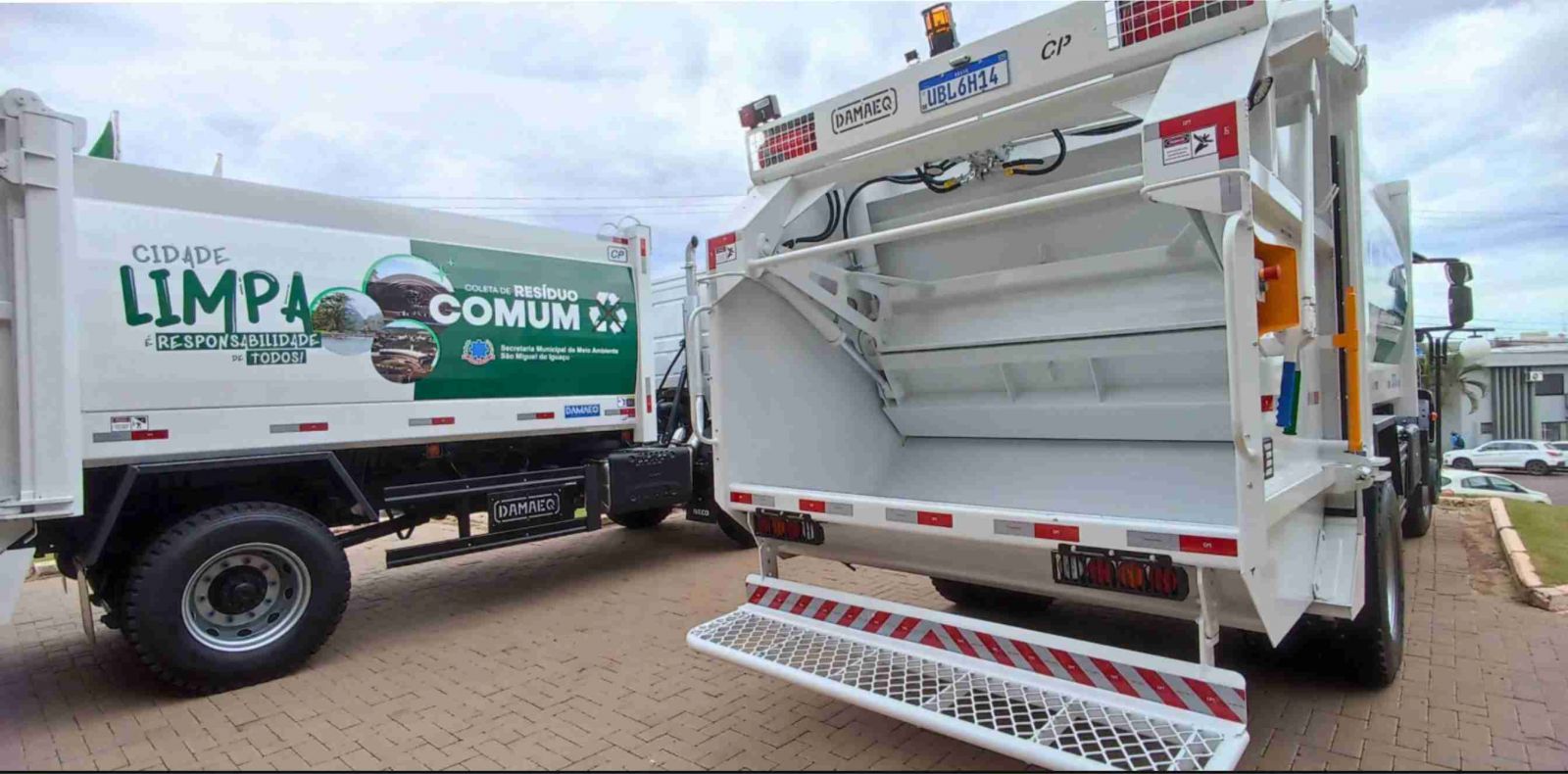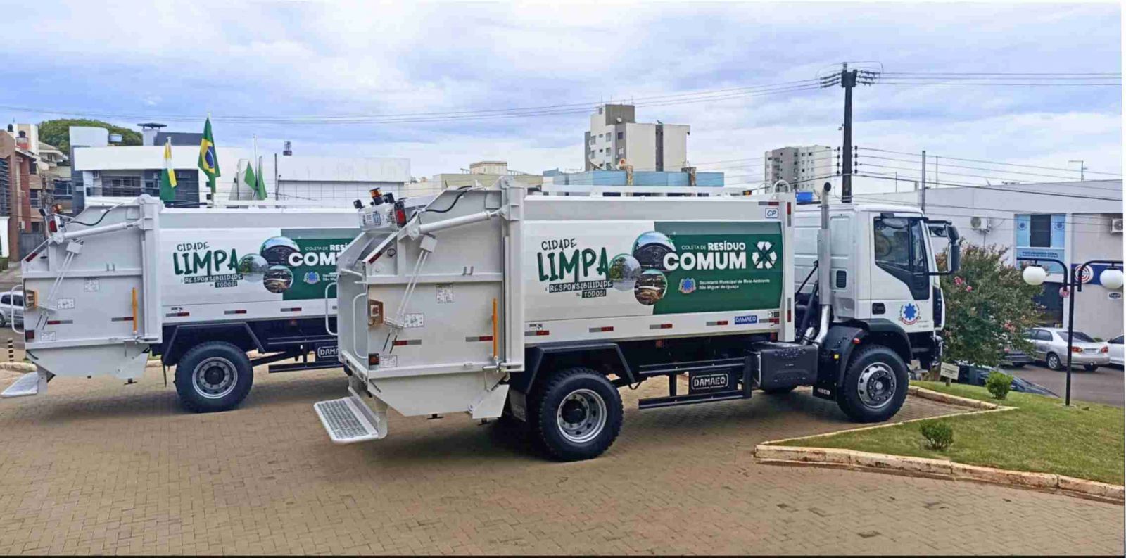 Da Assessoria - O Governo Municipal de São Miguel do Iguaçu, por meio da Secretaria de Meio Ambiente, realizou a aquisição de dois novos caminhões compactadores de lixo, destinados à coleta e ao transporte de resíduos sólidos urbanos. O investimento, realizado com recursos próprios do Município, totaliza R$ 1.414.000,00.