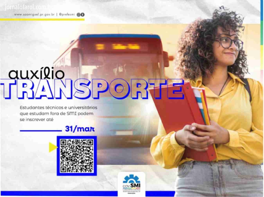 As inscrições devem ser realizadas em nome do próprio estudante, por meio do site oficial do Município (www.saomiguel.pr.gov.br), clicando no botão Governo Digital e, em seguida, selecionando o serviço “Auxílio Transporte Estudantil”. É necessário preencher o formulário e anexar os documentos solicitados em nome do beneficiário até o dia 31 de março de 2026.