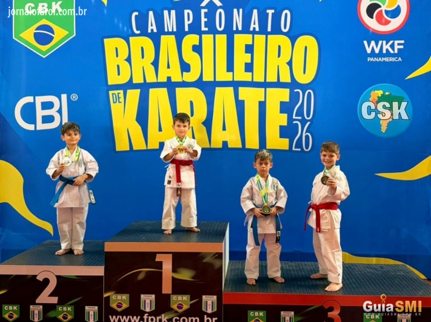 Fonte: Guia São Miguel - Josué Azevedo, do Dojo Team Pimenta, venceu no Kata Individual Sub-8 e também garantiu ouro no Kata em Equipe Sub-10 em São José dos Pinhais