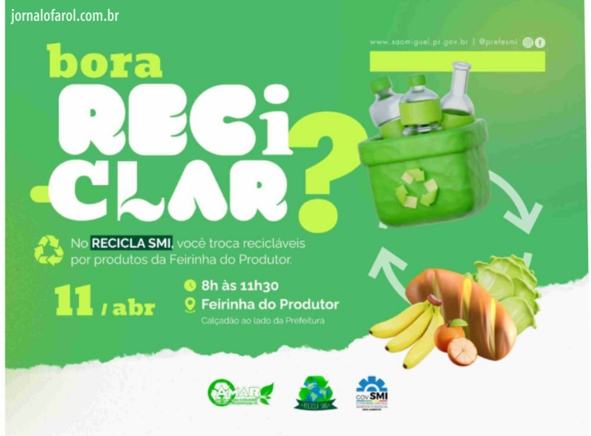 Da Assessoria - O Governo Municipal de São Miguel do Iguaçu, por meio da Secretaria Municipal de Meio Ambiente, realiza neste sábado, dia 11, mais uma edição da campanha Recicla SMI. A ação acontece na Feira do Produtor, próxima à prefeitura, das 08h00 às 11h00.