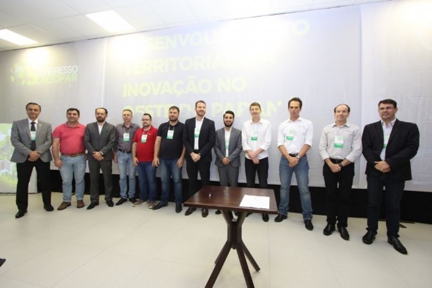 Da Assessoria - O Sistema Regional de Inovação (SRI), a Associação das Empresas de Tecnologia da Informação e Comunicação do Oeste do Paraná (Iguassu-IT), e coordenadores de núcleos de inovação dos municípios de Cascavel, Toledo, Marechal Cândido Rondon, Palotina e Foz do Iguaçu assinaram sexta-feira (08), o Pacto pela Inovação – Movimento Iguassu Valley. Com esta iniciativa os núcleos de tecnologia da informação e inovação da região poderão utilizar a marca Iguassu Valley, registrada pela Iguassu-IT. A assinatura ocorreu junto ao 5º Congresso Caciopar e 6º Fórum do Programa Oeste em Desenvolvimento (POD).