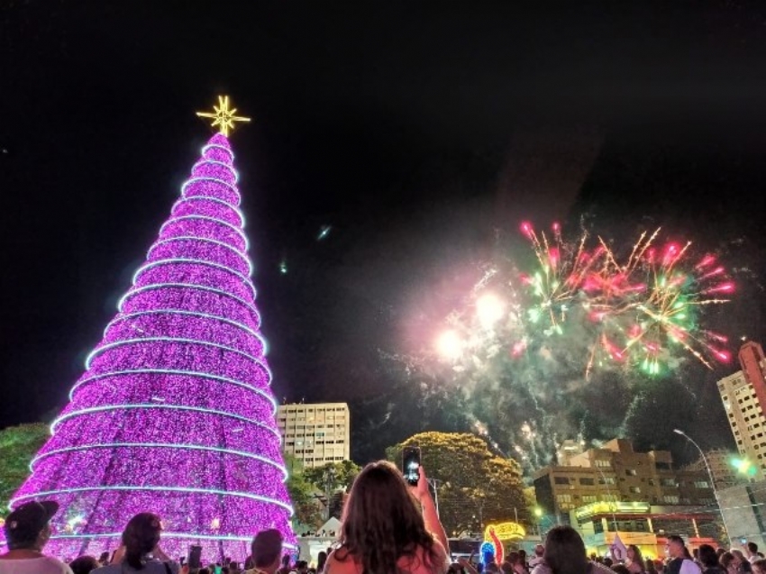 Recepção ao Papai Noel, queima de fogos e espetáculo lúdico marcaram o lançamento, na Praça da Paz, nessa quarta-feira (11). No sábado (14), o espetáculo será no Gramadão de Itaipu, a partir das 20h