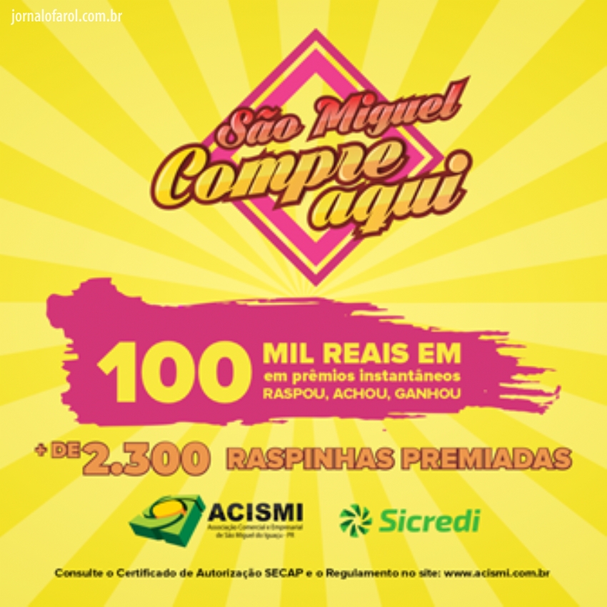 Da Assessoria – Ademir José Jung - A Associação Comercial e Empresarial de São Miguel do Iguaçu - ACISMI - lançou no sábado(01) a 2ª edição da Campanha "São Miguel Compre Aqui" onde participam mais de 50 empresas que vão distribuir 100mil reais em prêmios instantâneos e mais de 2.300 raspinhas premiadas. A campanha, que vai até julho do ano que vem, distribuirá raspinhas nos valores R$ 25,00; R$ 50,00; R$ 75,00 e R$ 100,00.
