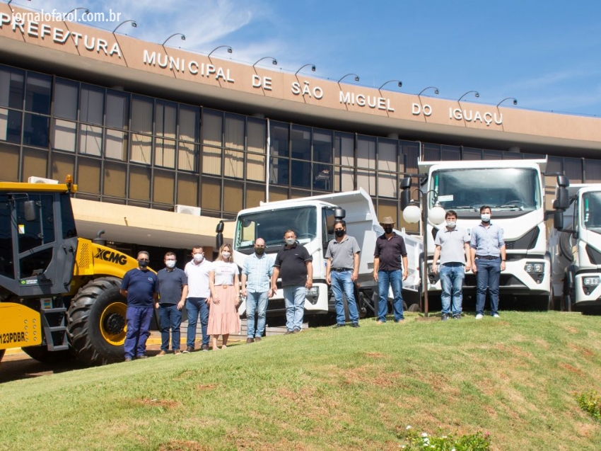 Na última quarta-feira (27), o prefeito Motta, acompanhado do vice-prefeito, Claudio Rodrigues, esteve vistoriando os veículos que estavam estacionados em frente ao Paço Municipal. São quatro caminhões que já foram entregues e mais dois devem chegar até o mês de dezembro. E um rolo compactador para reforçar a frota pesada do município e intensificar o atendimento das demandas da comunidade são-miguelense.