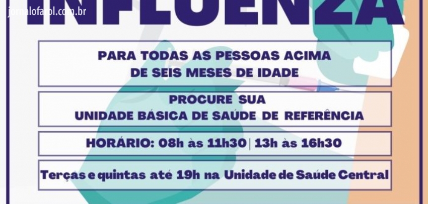 É importante ressaltar que a Unidade de Saúde Central tem horário estendido até as 19h00 para vacinação as terças e quintas-feiras, e a vacina contra a gripe também será aplicada nessas datas.