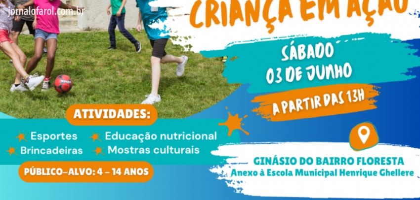 Da Assessoria - O Governo Municipal de São Miguel do Iguaçu, por intermédio das Secretarias de Saúde e de Cultura, Esporte, Lazer e Turismo, vai realizar no próximo sábado, 03 de junho, o projeto ‘Criança em Ação’ no Ginásio do Bairro Floresta, localizado ao lado a Escola Municipal Henrique Ghellere.