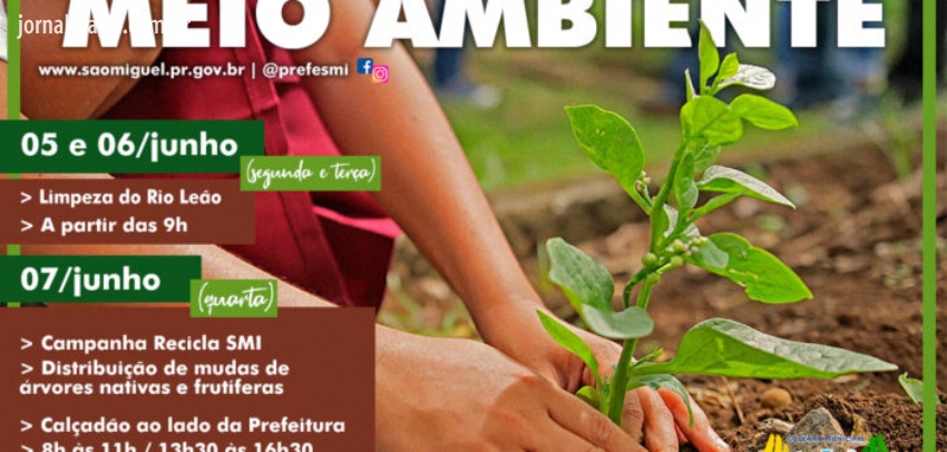 Da Assessoria - O Governo Municipal de São Miguel do Iguaçu está preparando uma programação especial para marcar o Dia Mundial do Meio Ambiente, comemorado em 05 de junho. Dentre as várias atividades, está a apresentação do espetáculo ‘Juliana e Romão, um caso de Separação’, limpeza do Rio Leão, Campanha Recicla SMI, recolha de materiais eletrônicos e distribuição de mudas de árvores nativas e frutíferas.