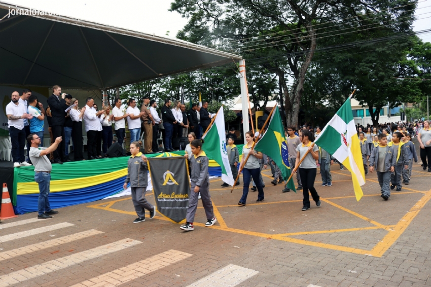 O presidente do Legislativo Municipal, vereador Anderson Lazzeris, enalteceu a realização do desfile e o resgate do sentimento pátrio. “Esse é o sentimento de orgulho, amor e devoção à Pátria”, afirmou – para em seguida chamar a atenção de todos sobre a importância das escolhas dos nossos representantes. “Temos que ter o maior cuidado na hora de escolher quem vai continuar cuidando do nosso patrimônio – quem vai continuar nos representando”, mesmo sem citar, referindo-se, é claro, que já estamos num período pré-eleitoral e no próximo anos teremos que votar.