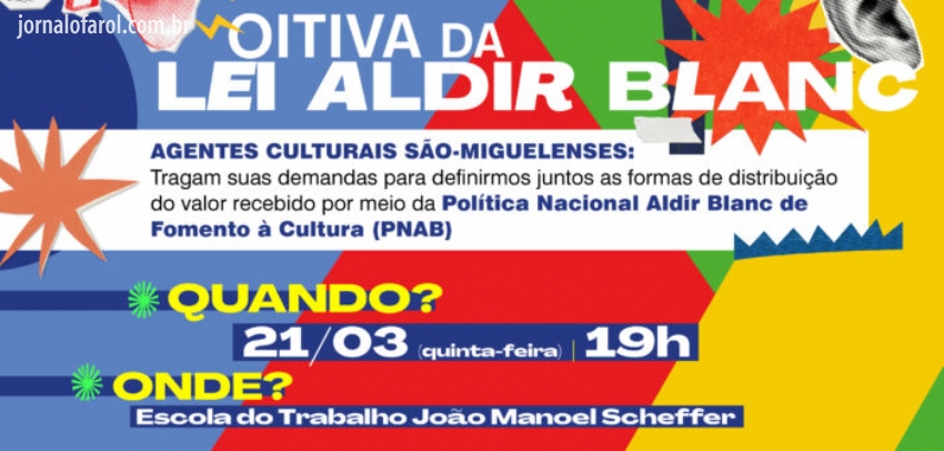 Da Assessoria - O Governo Municipal de São Miguel do Iguaçu, por intermédio da Secretaria de Cultura, Esporte, Lazer e Turismo, vai realizar na próxima quinta-feira, 21, uma oitiva para apresentar a Lei Aldir Blanc 2 aos agentes culturais do município. O encontro será realizado na Escola do Trabalho João Manoel Scheffer, a partir das 19h00.