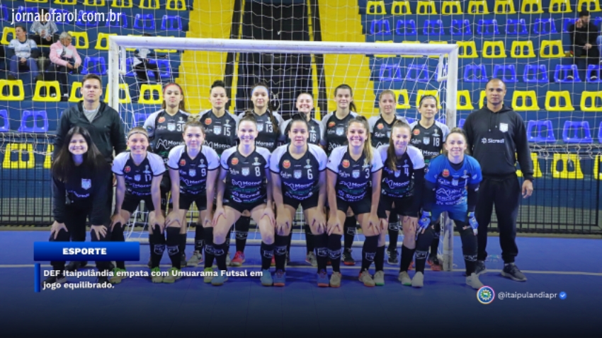 Da Assessoria -Neste último sábado, a equipe da DEF Itaipulândia Futsal recebeu em casa o time de Umuarama Futsal, em uma partida bastante equilibrada. O jogo terminou empatado em 1 a 1, com gols marcados por Yasmin, representando Itaipulândia, e Camila, pela equipe de Umuarama.