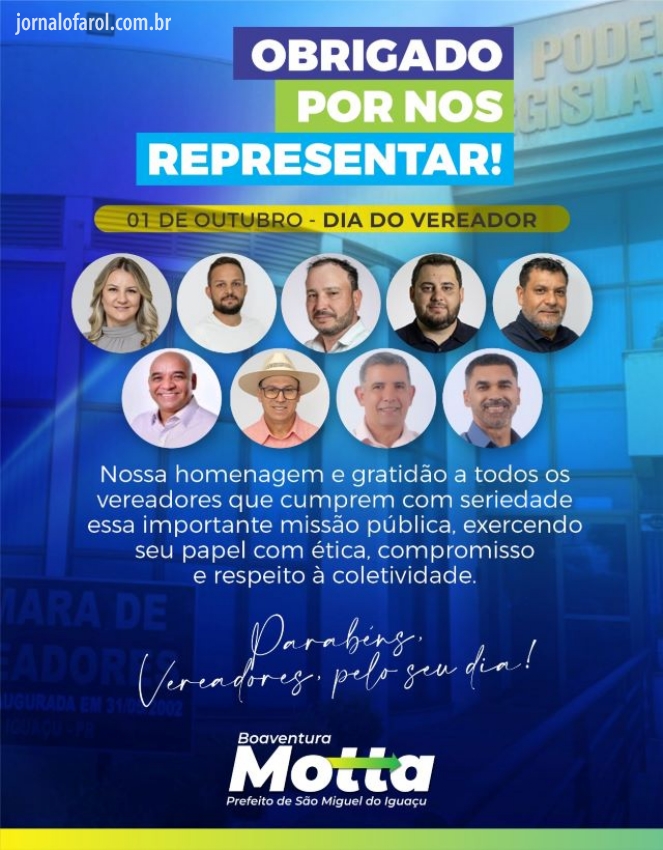 | 01 de outubro, Dia do Vereador! Os Parabéns do Executivo Municipal de São Miguel do Iguaçu |