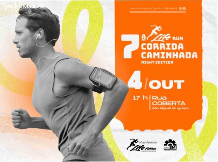 Da Assessoria - O Governo Municipal de São Miguel do Iguaçu e a Academia Life Fitness irão realizar no dia 4 de outubro a 7ª edição da Corrida/Caminhada Life Run, uma das maiores competições esportivas do município. A concentração, a largada e a chegada acontecem na Rua Coberta Addy Calvalca, a partir das 17h00, em um evento que promete reunir atletas de toda a região e também de países vizinhos.