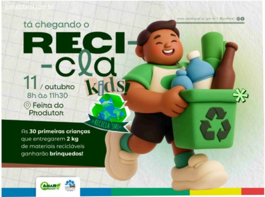 Da Assessoria - O Governo Municipal de São Miguel do Iguaçu, por meio da Secretaria de Meio Ambiente, realizará neste sábado, dia 11 de outubro, uma edição especial da campanha Recicla SMI, com programação voltada à celebração do Mês das Crianças.
