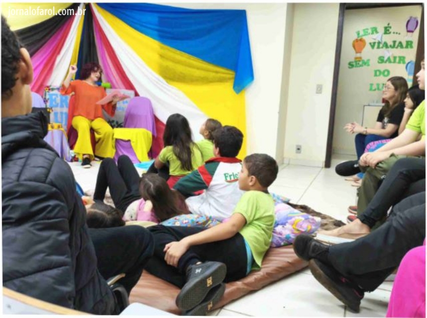 Durante a ação, as crianças puderam assistir à encenação da história “Dragões e Bolhas de Sabão”, conduzida de forma interativa e lúdica. Uma turma da rede municipal de ensino participou da atividade, auxiliando a autora em alguns dos desafios propostos ao longo da narrativa, tornando o momento ainda mais divertido e educativo.