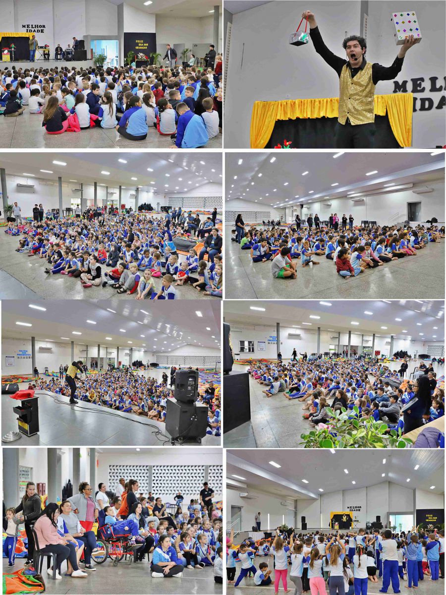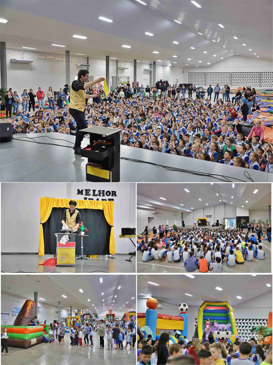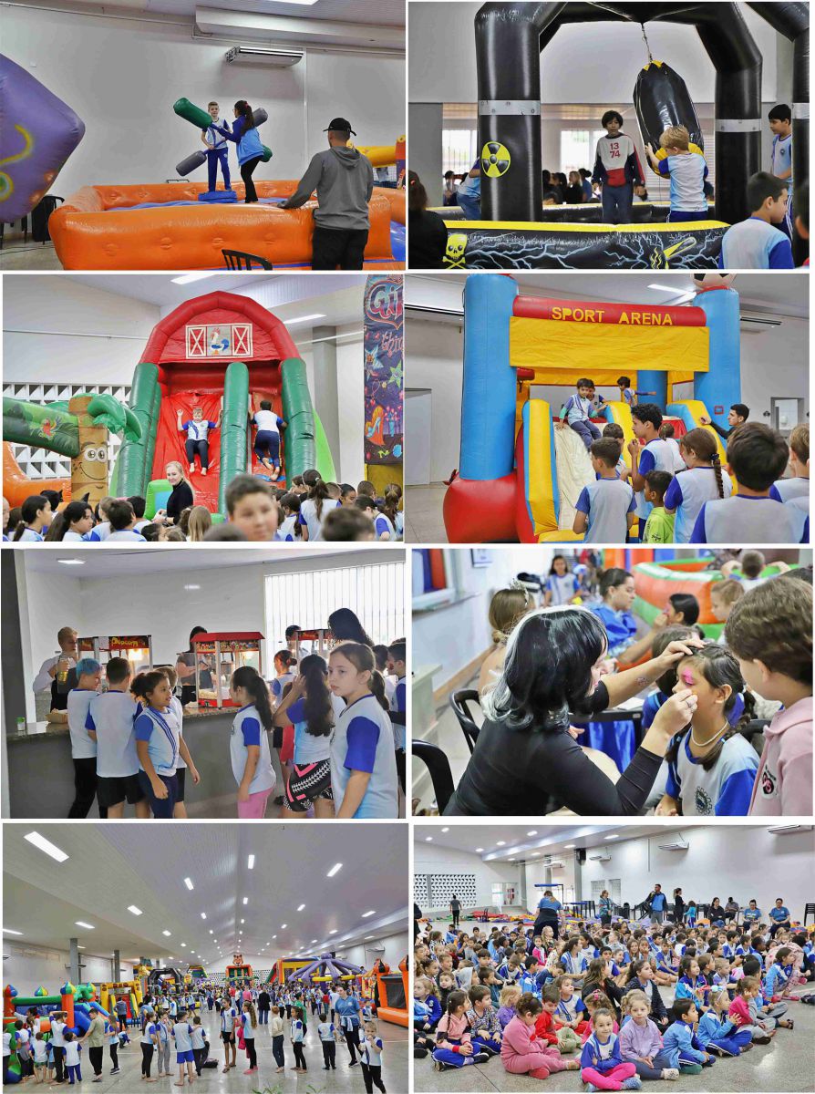 A programação seguiu até o dia 09 de outubro, com brincadeiras nos brinquedos infláveis e muita animação. Para garantir a participação de todos, as crianças dos CMEIs aproveitaram os brinquedos em suas próprias unidades, enquanto os alunos das escolas municipais participaram das atividades no Centro de Eventos, onde também puderam se encantar com um show de mágica preparado especialmente para eles.