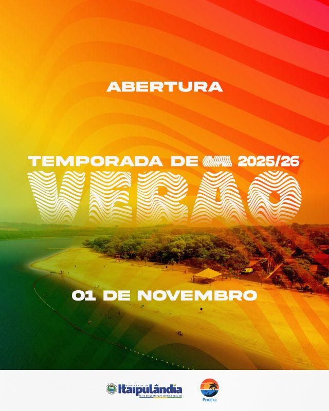 Itaipulândia deseja a todos os banhistas uma excelente Temporada de Verão 2025/26, que curtam com moderação e responsabilidade, aproveitando ainda os demais pontos turísticos da cidade.
