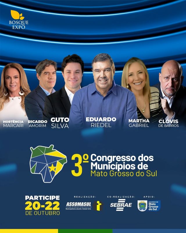 Em sua terceira edição, o tema principal do Congresso do Mato Grosso do Sul é a “Eficiência na Gestão Pública”. Entre os palestrantes está o governador Eduardo Riedel, com o tema “Desenvolvimento e Gestão Pública: o protagonismo dos municípios na transformação socioeconômica do Estado de Mato Grosso do Sul”. Outra atração do evento será a maior jogadora de basquete do Brasil, Hortência Marcari, que falará sobre “A força do protagonismo feminino: valores e atitudes que transformam”.