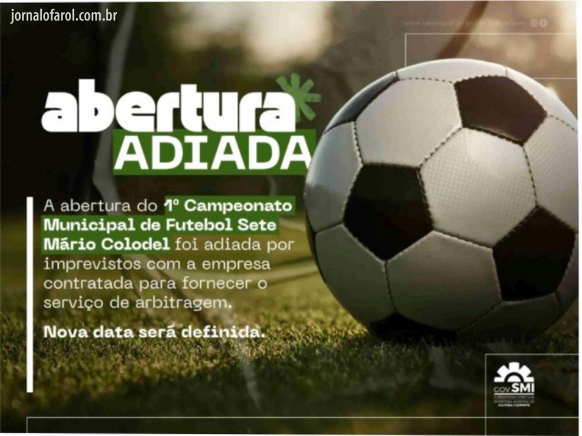 Da Assessoria - O Governo Municipal de São Miguel do Iguaçu, por meio da Secretaria de Cultura e Esporte, informa que a abertura do 1º Campeonato Municipal de Futebol Sete Mário Colodel foi adiada mais uma vez.