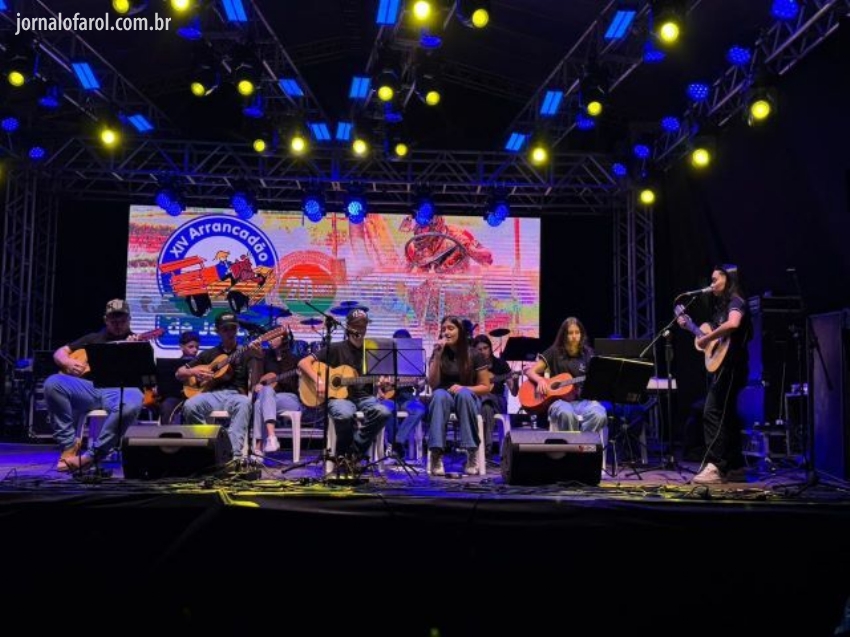 A apresentação, conduzida pela professora Eloísa Darla Grotto, reuniu crianças, jovens e adultos em um espetáculo que celebrou a diversidade musical. Além dos violeiros, o grupo contou com a participação da professora de teclado e dos alunos de vocal e bateria, ampliando a riqueza sonora e proporcionando uma experiência completa ao público presente.