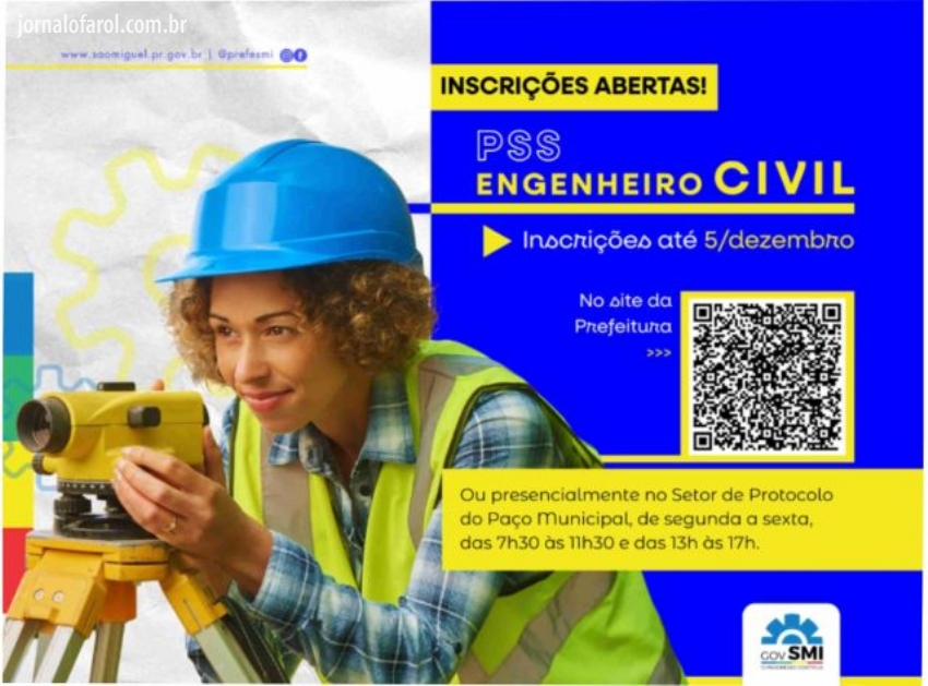 Da Assessoria - O Governo Municipal de São Miguel do Iguaçu abriu as inscrições do Processo Seletivo Simplificado (PSS) nº 008/2025, destinado à contratação de Engenheiro Civil para atuar junto à Secretaria Municipal de Planejamento.