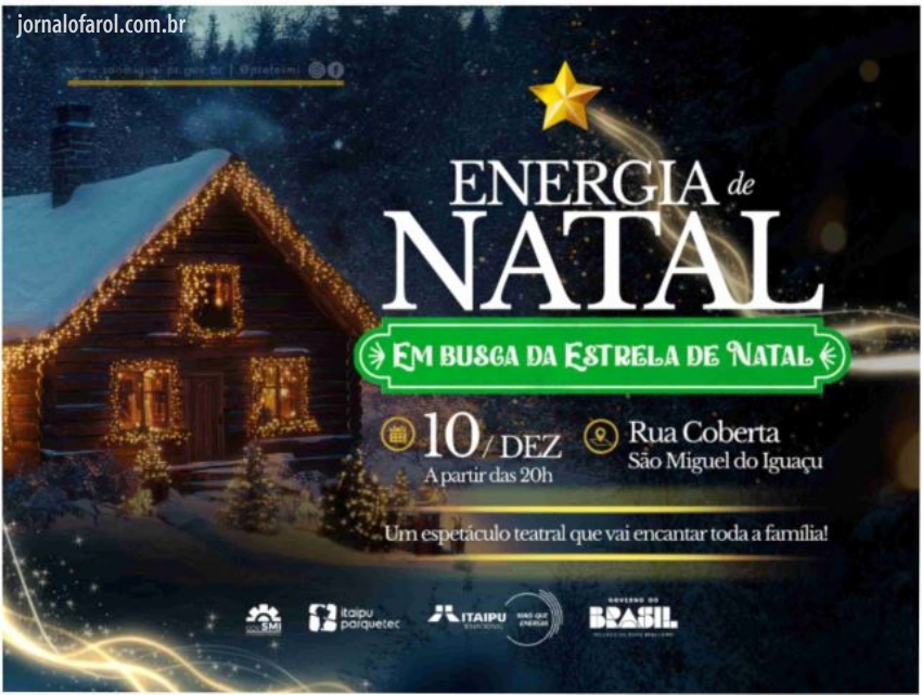 Da Assessoria - São Miguel do Iguaçu vai receber, no próximo dia 10 de dezembro, o espetáculo “Energia de Natal – Em Busca da Estrela de Natal”, a partir das 20h00, na Rua Coberta Addy Cavalca. O evento é promovido pela Itaipu Binacional e pelo Itaipu-Parquetec, em parceria com o Governo Municipal, por meio da Secretaria de Cultura e Esporte, e chega ao município pelo terceiro ano consecutivo.