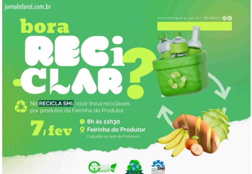 Da Assessoria - O Governo Municipal de São Miguel do Iguaçu, por meio da Secretaria de Meio Ambiente, realiza neste sábado, dia 07, a primeira edição de 2026 da campanha Recicla SMI.