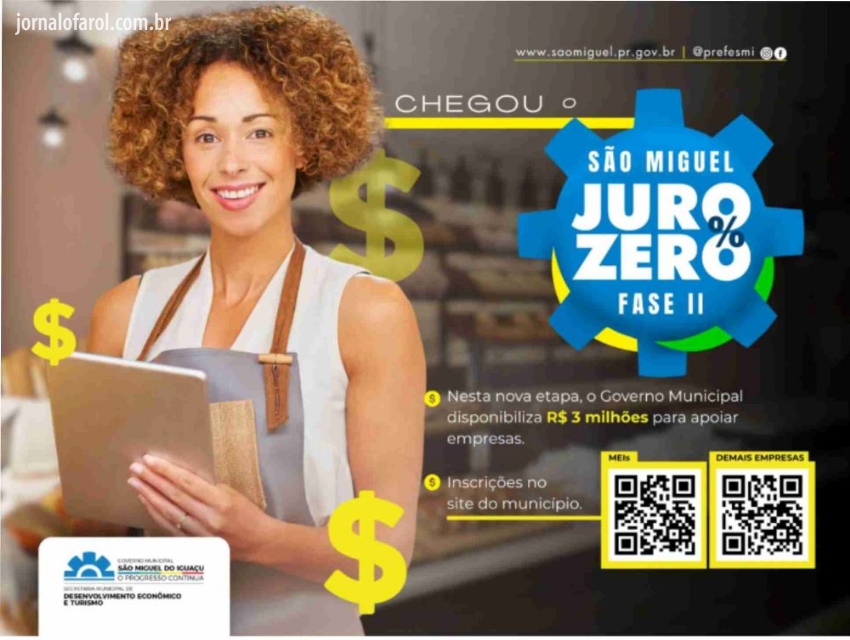 Da Assessoria - O Governo Municipal de São Miguel do Iguaçu, por meio da Secretaria de Desenvolvimento Econômico e Turismo, está disponibilizando R$ 3 milhões para a Fase II do programa ‘São Miguel Juro Zero’, lançada na quinta-feira, 26, com a publicação no Diário Oficial Eletrônico (DOE).