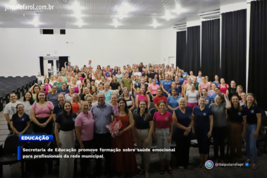 Da Assessoria - A Secretaria Municipal de Educação de Itaipulândia promoveu, na noite de quinta-feira (05), uma formação voltada aos profissionais da educação da rede municipal de ensino. O encontro foi realizado no Centro de Artes e integrou as ações do Projeto Saúde do Professor, desenvolvido pela Secretaria de Educação e coordenado pela psicóloga Gabriela de Souza.