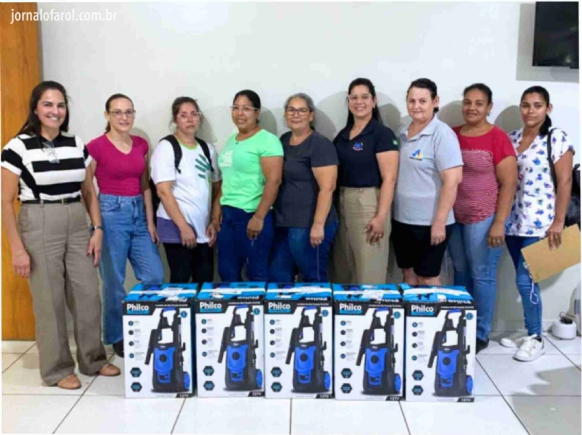 Durante o encontro, o Departamento de Atenção Básica também realizou a entrega de lavadoras de alta pressão adquiridas pelo município, equipamentos que irão auxiliar no trabalho diário das zeladoras e contribuir para a manutenção da limpeza nas unidades de saúde.