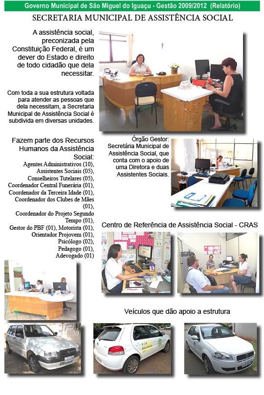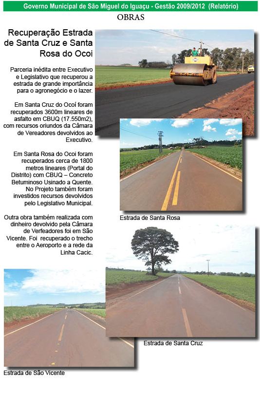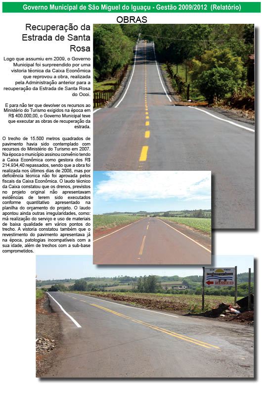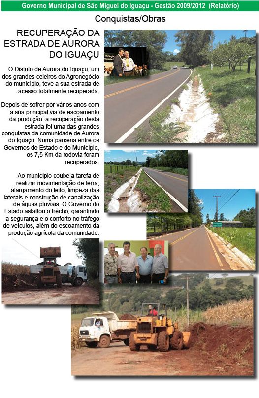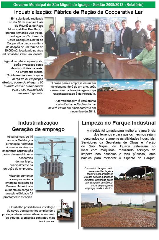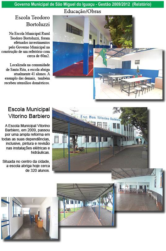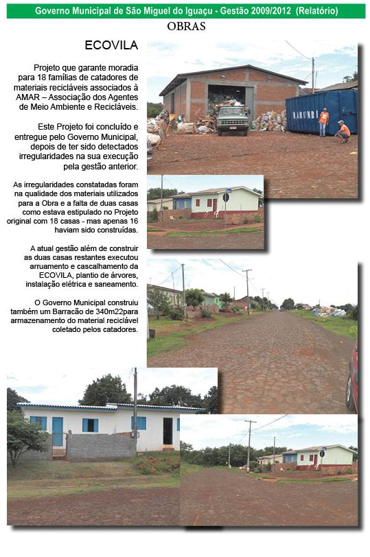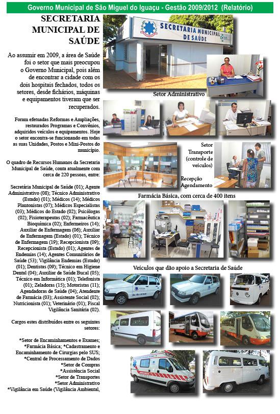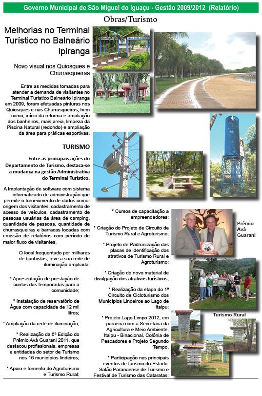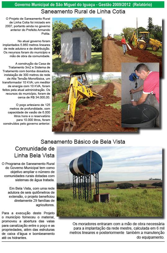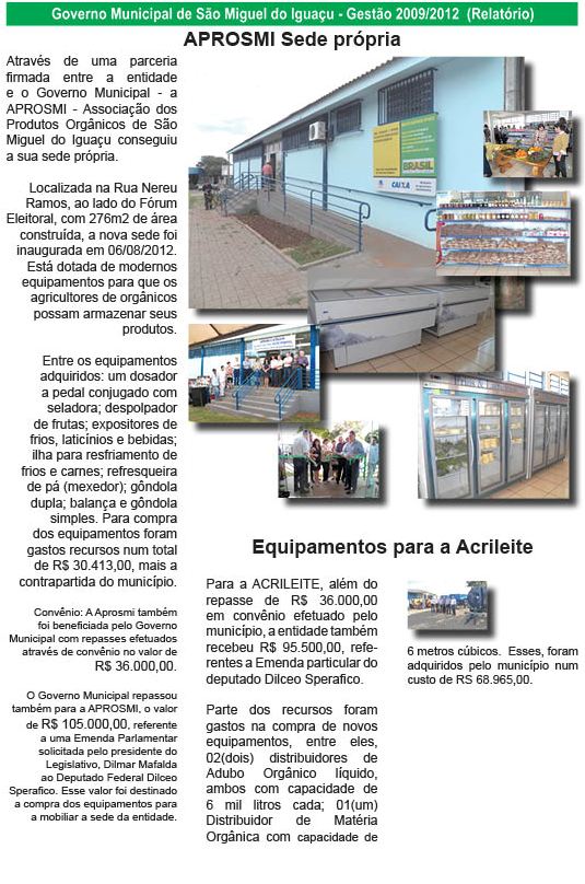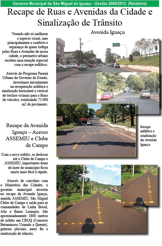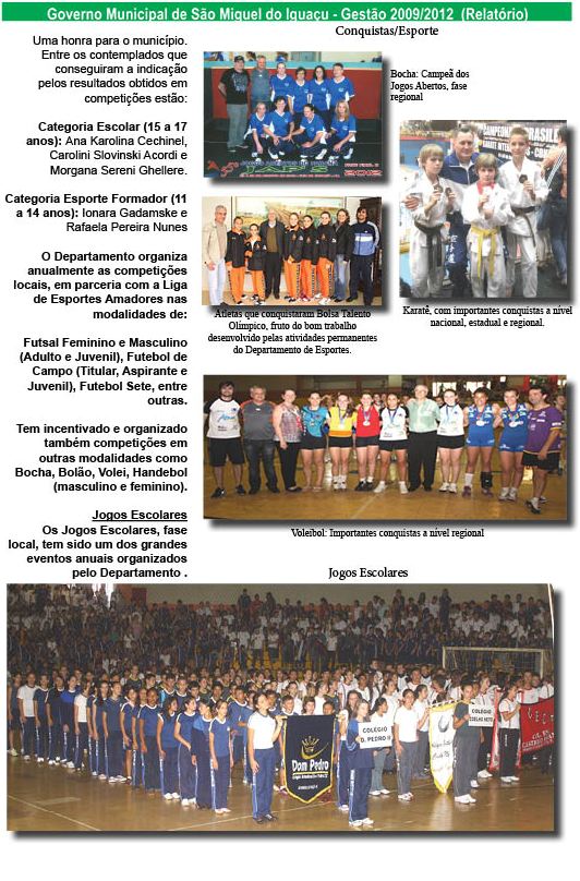 Confira as ações do Governo Municipal de São Miguel do Iguaçu na Gestão 2009/2012. O presente relatório foi efetuado pelo nosso site: www.jornalofarol.com.br. Parte das fotos é do acervo da Assessoria de Imprensa da Prefeitura Municipal.